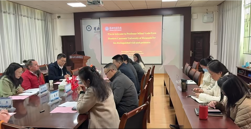 11月26日,罗马尼亚“迪米特里耶·坎特米尔”大学国际事务负责人Mihai Voda教授访问我院。学院领导班子在219会议室举行会谈,对来宾表示热烈欢迎,双方进行了亲切交流。