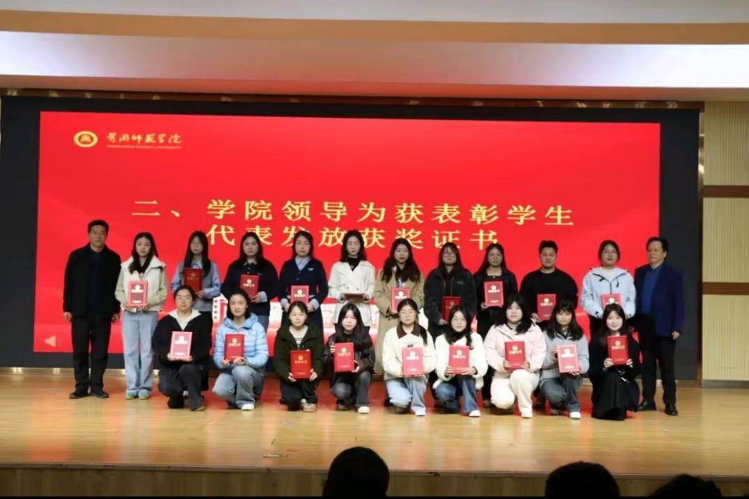 会上,副院长黄勇奇宣读学院表彰文件,对在2026年研究生考试中表现突出的班级和学生予以通报表彰。学院领导为受表彰班级和学生代表颁发荣誉证书,充分肯定他们的勤学奋进和优异表现,号召全体同学以先进为榜样,在求学路上勤勉笃行、奋勇争先。