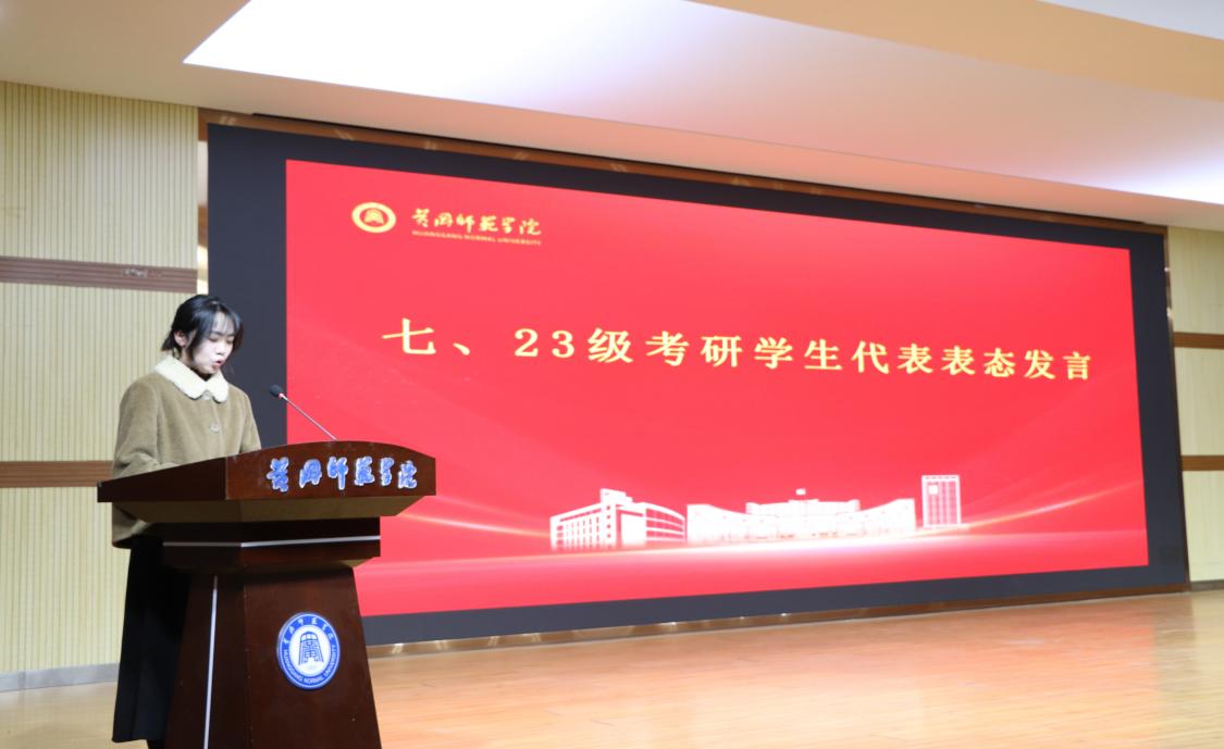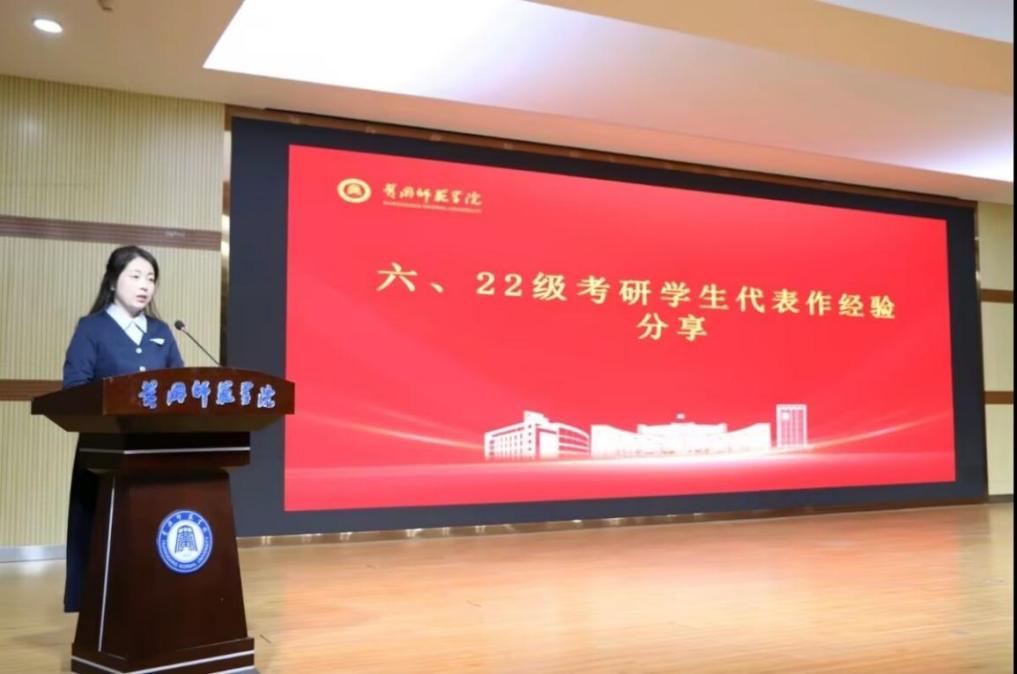经验交流环节,22级考研上岸学生代表结合自身备考经历,从院校选择、复习规划、重难点突破等方面分享实战经验,为学弟学妹提供可借鉴的参考;23级考研学生代表作表态发言,表达了坚定的考研决心与充足的备考信心,承诺将以饱满热情投入复习,用优异的的成绩回报学院的培养和各位老师一直以来的悉心教导与殷切期许。