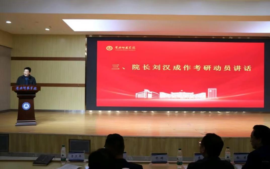院长刘汉成作考研动员讲话。他结合学院人才培养特色与学科发展优势,深入阐释了考研对个人成长、职业规划的重要意义,叮嘱同学们要早谋划、早准备、早发力,结合自身实际合理确定考研目标,科学制定备考计划,保持积极平稳的心态,以脚踏实地的作风全力备战考研,努力实现升学理想。
